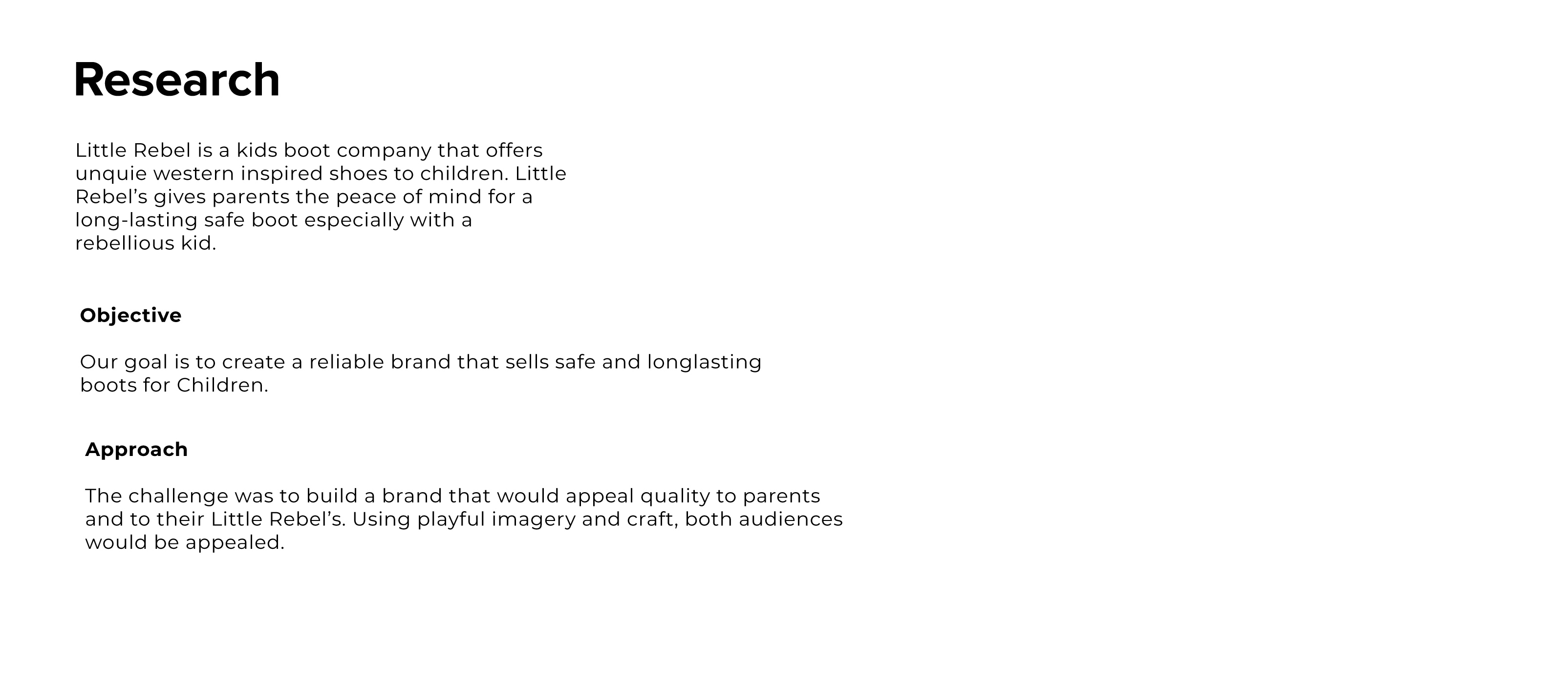 The challenge was to build a brand that would appeal quality to parents and fun to their Little Rebel. Using playful imagery and craft, both audiences would be appealed.